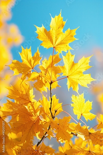 Bright Yellow Autumn Leaves Against a Clear Blue Sky on a Sunny Day