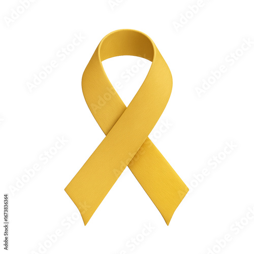 Bright yellow awareness ribbon isolated on a transparent background