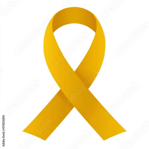 Bright Yellow Awareness Ribbon on White Background Symbol for Support and Cause Recognition