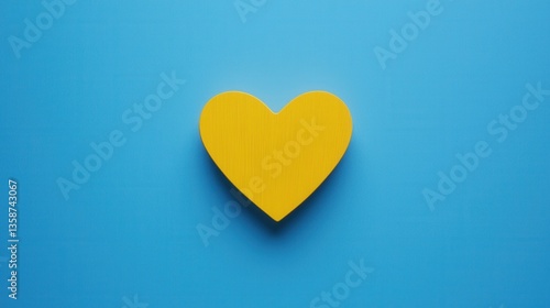 Bright Yellow Heart Shape on Vibrant Blue Background Studio Shot