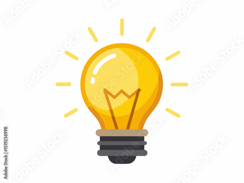 Bright Yellow Light Bulb Icon in Flat Style on Purple Background Representing Creative Idea and Innovation Concept