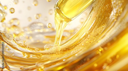 Bright Yellow Liquid Pouring with Bubbles and Foam Against Background