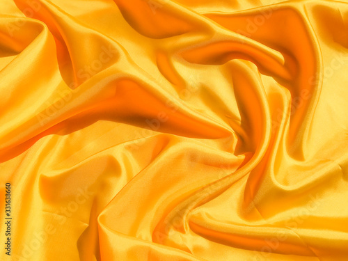 Bright yellow silk with waves moving for background. Abstract design with copy space