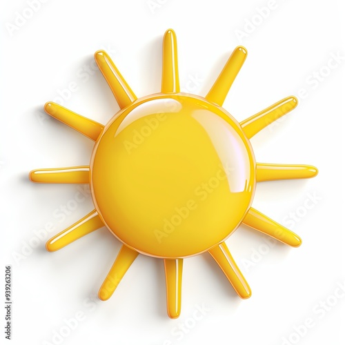 Bright yellow sun icon with shiny rays. Perfect for weather illustrations, summer themes, and graphic design projects.