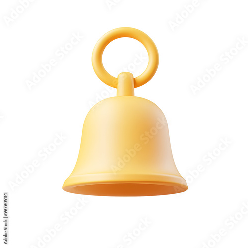 Bright yellow toy bell with a round handle, cut out transparent