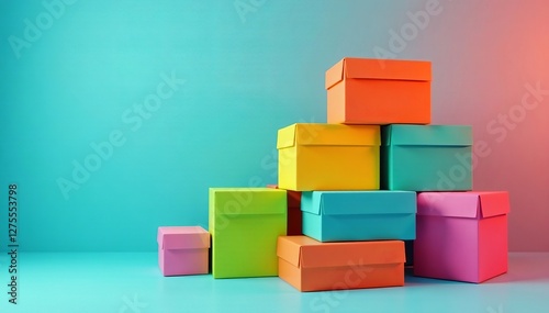 Brightly colored stack of cardboard boxes with a rainbow gradient, perfect for diverse shipping or storage concepts, shipping, colorful, gradient