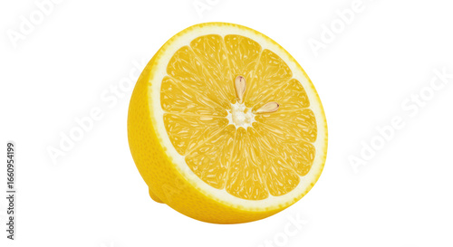 Brightly sliced lemon showcasing vibrant yellow color against a clean background isolated on white background