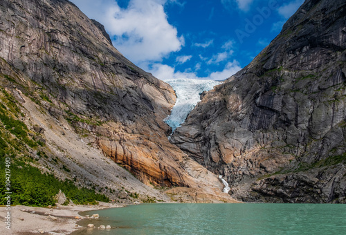 Briksdalsbreen is a glacier arm of Jostedalsbreen,Briksdalsbre Mountain Lodge,Norway. July 2019