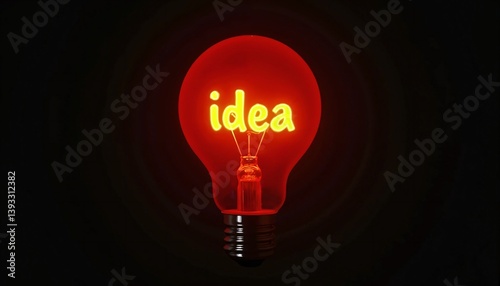 Brilliant Idea: A Glowing Red Light Bulb with the Word Idea Illuminated Inside