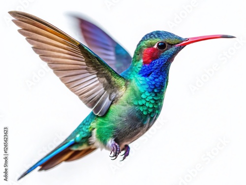 Broad-Billed Hummingbird in Flight, Isolated on Clear Background - High-Resolution Stock Photo