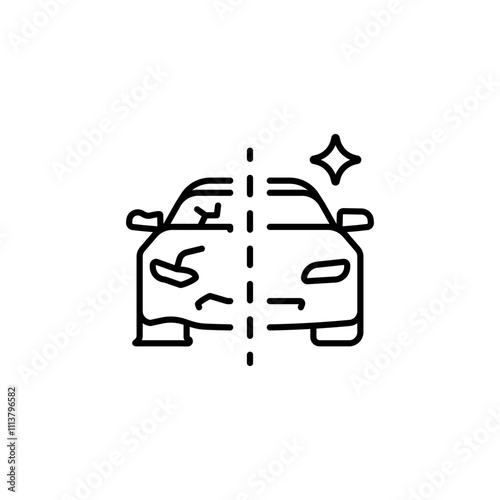 Broken vehicle. Repair of the car linear icon. Thin line customizable illustration. Contour symbol. Vector isolated outline drawing. Editable stroke