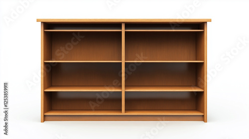 brown wooden empty bookshelf with multiple compartments isolated on white background
