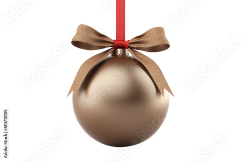 brown Christmas ball with ribbon and a bow, isolated on background. Generative AI