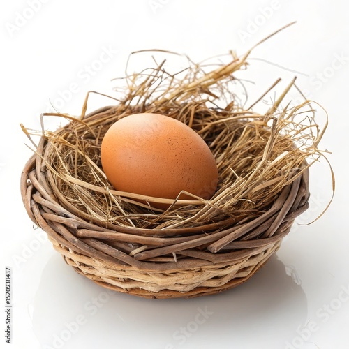 Brown Egg in Wicker Nest, Hay Background, Farm Fresh, Egg Nest , egg, farm