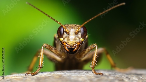 Brown Grasshopper Macro Closeup on Stone Surface in Natural Setting : Generative AI