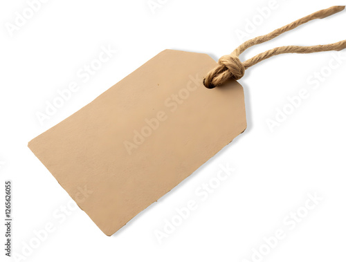 Brown kraft paper tag with twine isolated on transparent background. Ideal for gift wrapping, labeling, or DIY crafting projects