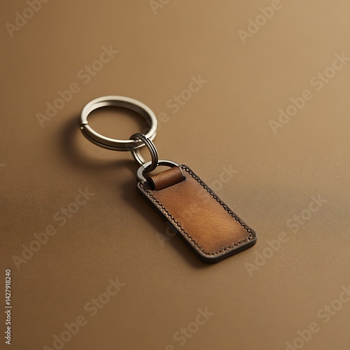 Brown leather keychain on a smooth, warm-toned surface, ideal for product showcasing