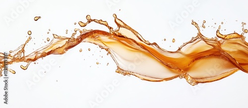 Brown liquid splash on white background with dynamic fluid motion and Copy Space for text insertion
