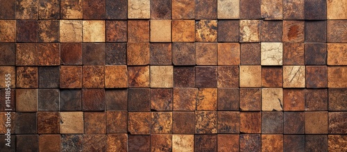 Brown mosaic wall texture featuring artistic square tiles perfect for creating unique backgrounds in design and photography projects.