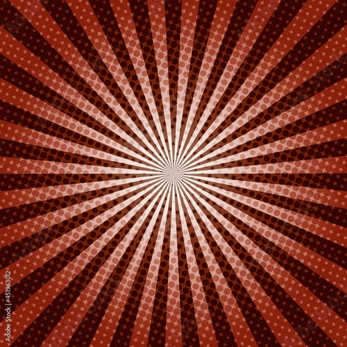 Brown Sunburst Pattern Background. Sunburst with rays background. Vector illustration. Brown radial background. Halftone background.