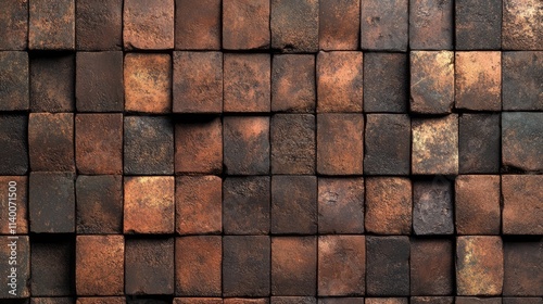 Brown textured block wall pattern with an aged and worn appearance suitable for background use in various design projects.