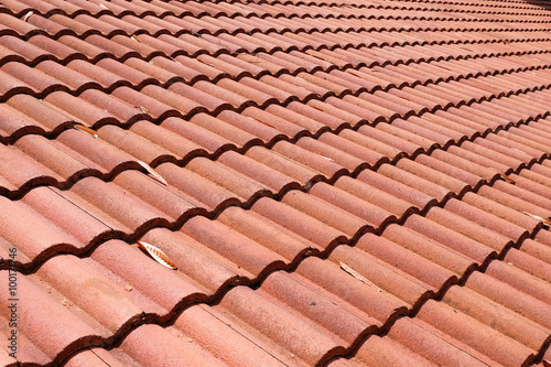 brown tile roof weathered on building residential