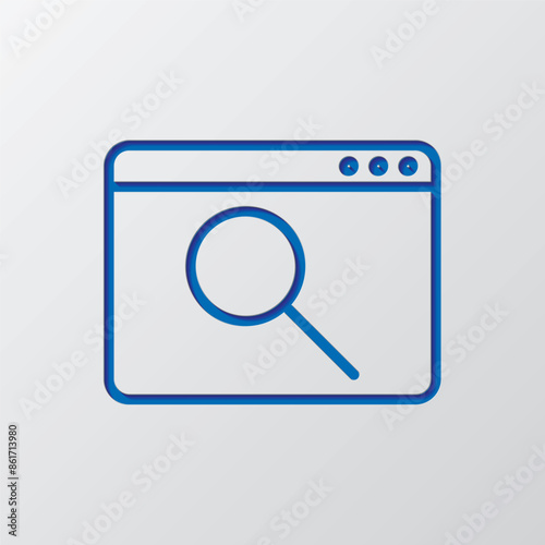 Browser, search simple icon vector. Flat design. Paper cut design. Cutted blue symbol with shadow. Gray background