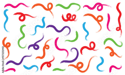 Brush line stroke squiggly paint set on chalkboard. Hand drawn doodle swirl wave brush curly charcoal stroke. Line squiggly paint curly hand drawn ink calligraphy elements. Vector illustration.