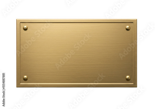 Brushed brass rectangular plaque with raised border and four brass screws isolated on transparent background