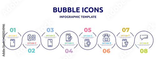 bubble icons concept infographic design template. included smartphone with front camera, wall phone, new mobile phone, phone in silence, tings, push buttons alarm rectangular speech bubble icons and