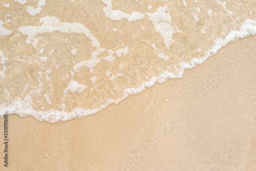 Bubble sea wave on blown sand beach sea and water reflect in blown sand background this image in background and texture concept