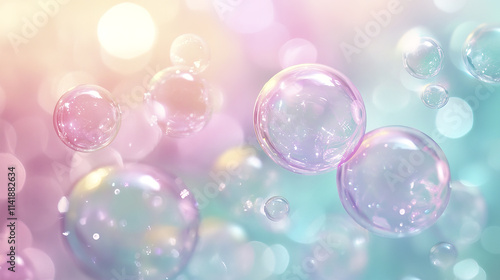 Bubbles floating in soft gradient backdrop create dreamy atmosphere