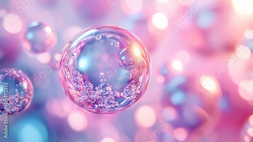 Bubbles floating in the air capturing light in a dreamy high-resolution pastel atmosphere