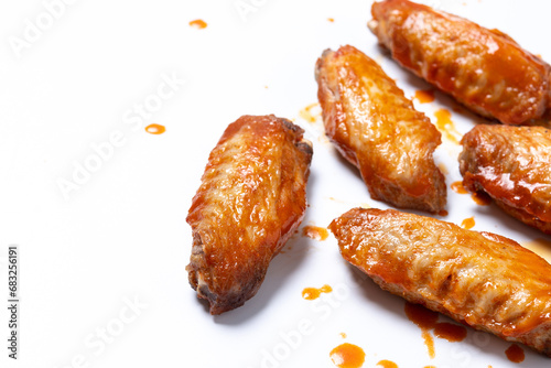 Buffalo spicy chicken wings with cayenne pepper sauce isolated on white background