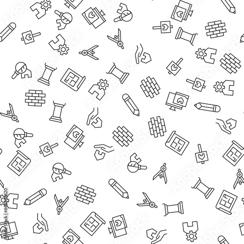 Building and Construction Seamless vector pattern made of line icons. Suitable for web wrapping, printing, web sites, apps