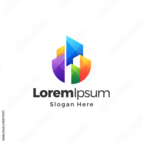 Building gradient color logo. Abstract building with creative concept. Branding for media, agency, apps, software, real estate, mortgage, apartment, residence, etc. Premium vector logo template design