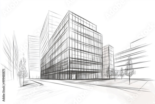 Building sketch, isolated on white.