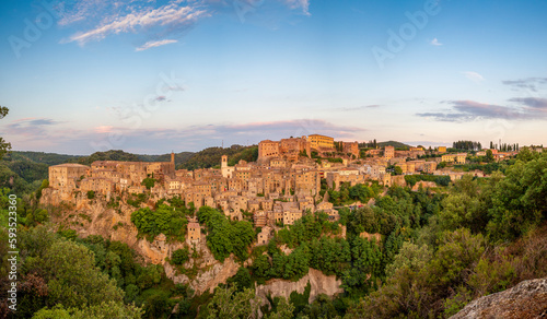 Buildings and trees under cloudy sky, Tuscany, Italy