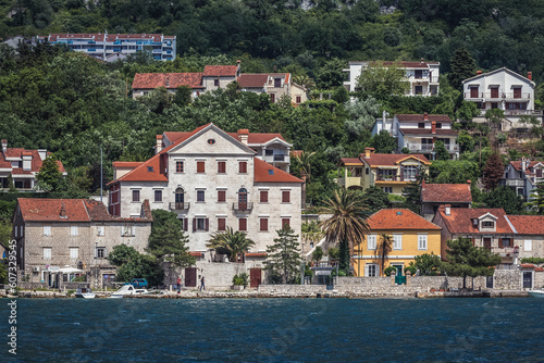 Buildings in Dobrota town, Kotor Bay on Adriatic Sea, Montenegro