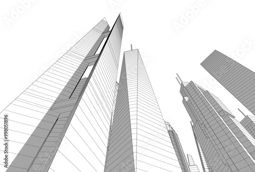 Buildings in the city skyscrapers sketch 3d rendering