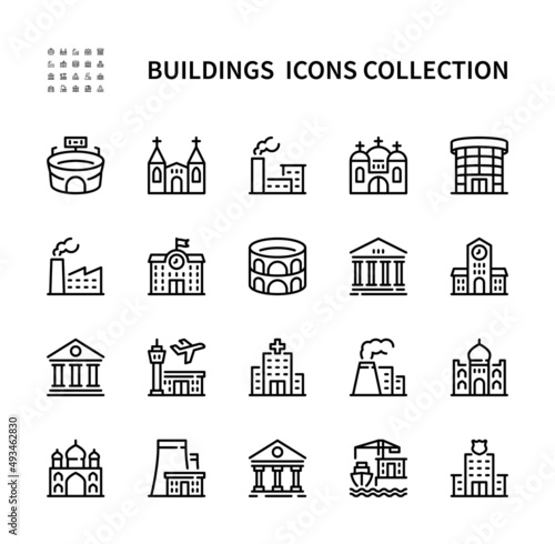Buildings vector line icons. Isolated icon collection on white background. Buildings symbol vector set.