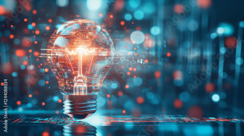 Bulb. Abstract vector light bulb shihe on dark blue. Creative idea, patent, digital solution, future technology, business innovation, hi tech electric, smart vivision concept