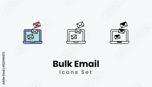 Bulk Email Icons thin line and glyph vector icon stock illustration