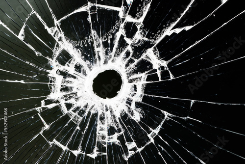 bullet hole on glass black background for overlay, transparent window