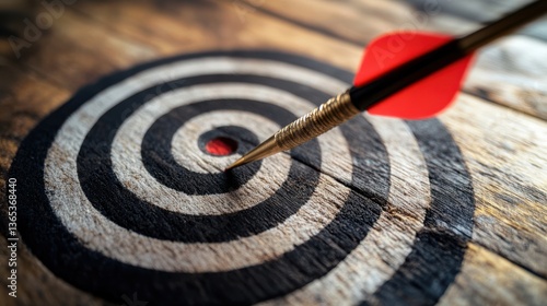 Bullseye Target Dart Hitting the Center on Rustic Wooden Background
