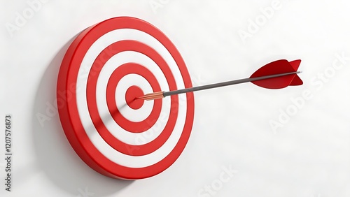 Bullseye target with red and white concentric circles and a sharp arrow hitting the exact center, symbolizing precision, success, accuracy, goal achievement, business strategy, and professional excel