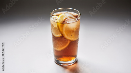 Bumble Coffee, Coffee with Orange Juice with Ice, Refreshing Drink on Light Grey Background