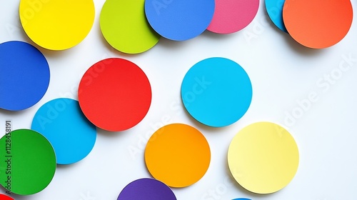 Bunch of colorful circles are scattered across a white background