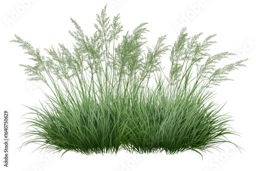 Bunches of green grass with blades and seed heads isolated on a transparent background, showcasing natural textures and vibrant colors