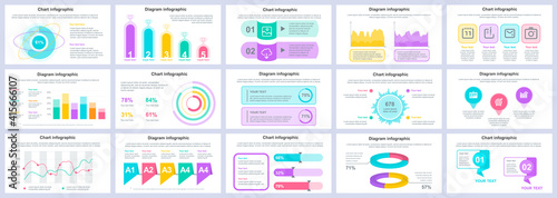 Bundle business and finance infographics presentation slides template. Different charts, diagrams, workflow, flowchart, timeline, schemes design template. Vector info graphic and infographics set.